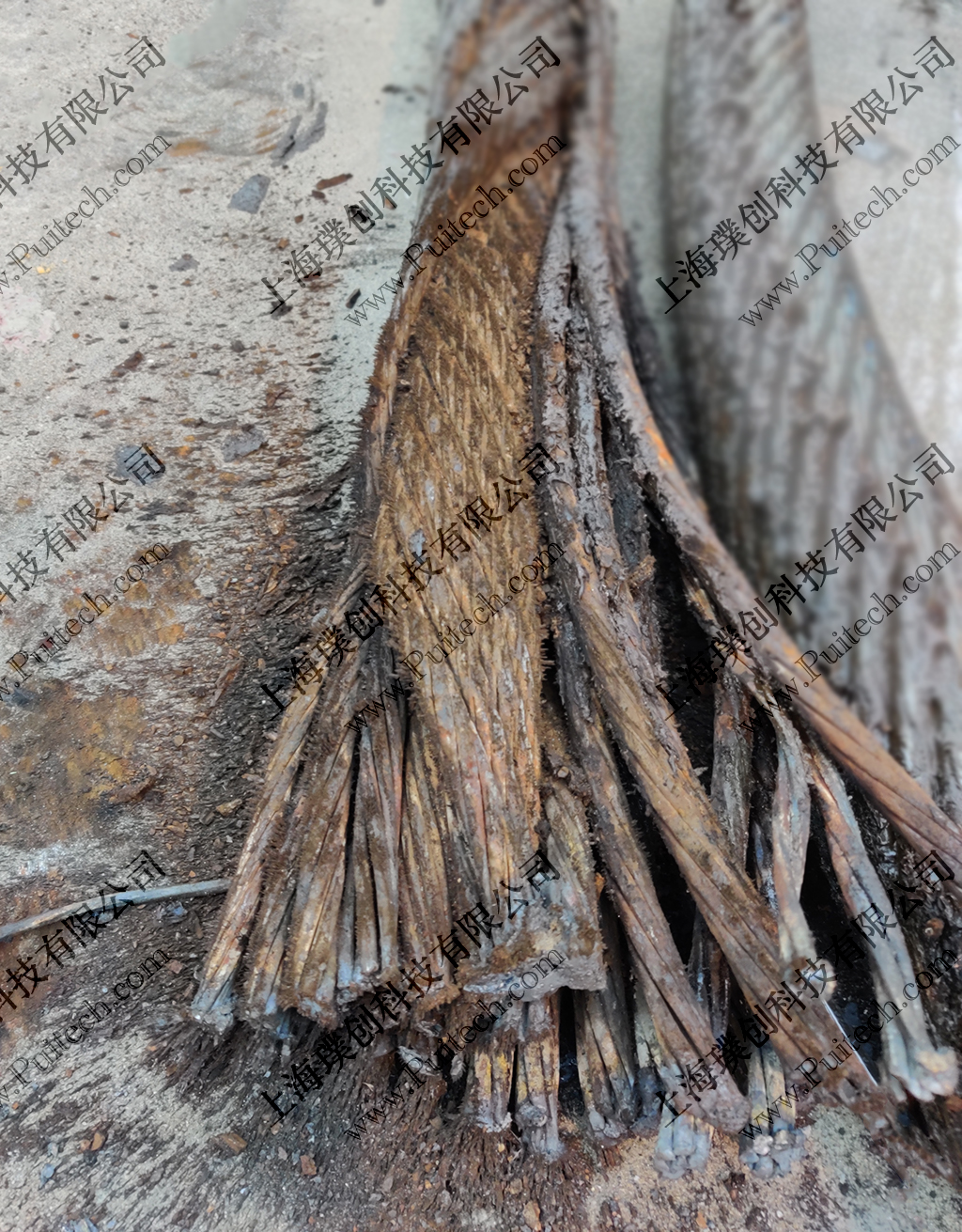 2.通過(guò)檢測(cè)后確認(rèn)銹蝕部位,前端出現(xiàn)銹蝕的鋼絲繩去掉,以確保鋼絲繩的**使用。