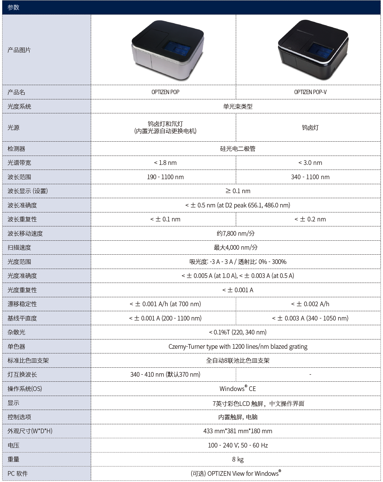 OPTIZEN POP 系列OPTIZEN POP采用自有的高分辨率波長測量模式。OPTIZEN POP系列是單光束分光光度計, 可以向用戶提供穩(wěn)定的性能和優(yōu)勢的價格。根據(jù)產(chǎn)品的型號分為POP, POP-V型。