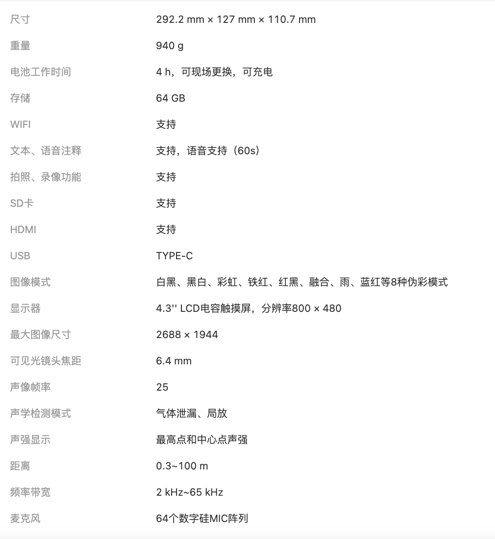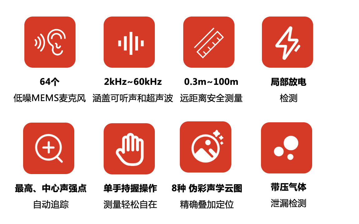 ??滴⒂癆P56系列聲波成像儀是一款專業(yè)的聲源定位產(chǎn)品。憑借64個低噪聲MEMS麥克風(fēng)和從2 kHz到60 kHz的可調(diào)帶寬范圍,AP56提供了一種簡單有效的方法來定位工業(yè)環(huán)境中的加壓空氣泄漏或檢測高壓系統(tǒng)中的局部放電。采用4.3英寸大液晶觸摸屏,數(shù)字圖片上顯示的結(jié)果,讓您快速找到問題的根源。操作距離可達(dá)100 m,確保您在距離內(nèi)進(jìn)行檢查。采用這種輕巧易用的工具,您可以發(fā)現(xiàn)潛在的風(fēng)險,減少故障排除,并節(jié)省設(shè)備故障和停機(jī)時間的額外成本。