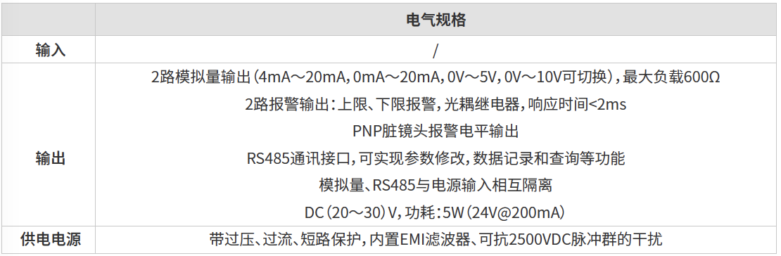 豐富的外設(shè)接口:獨(dú)立的模擬量輸出、報(bào)警輸出、電平輸出、RS485通訊接口