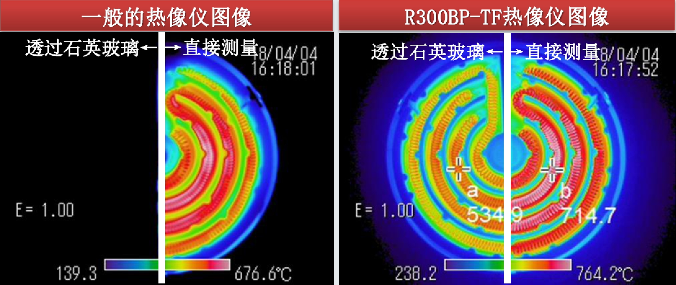 由于是長波特性無法測量石英玻璃后面的物體溫度 實現(xiàn)透過石英玻璃窗口材料的測量