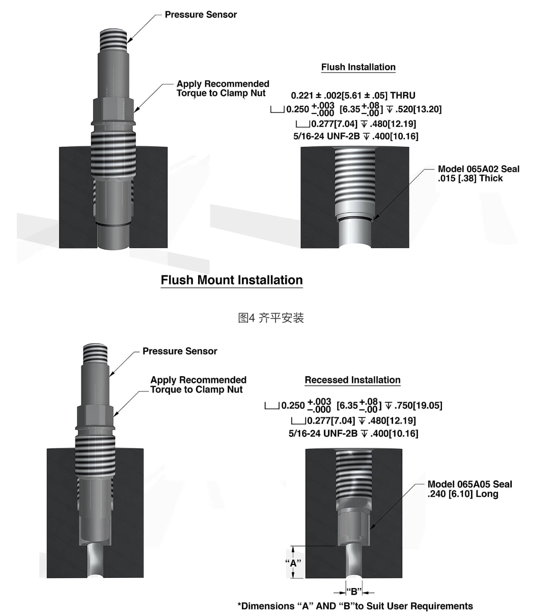 PCB?大多數(shù)壓力傳感器都帶有用于齊平安裝的密封圈。部分型號(hào),例如111,112,113系列還可提供用于嵌入式安裝的套管,如果需要額外的套管時(shí)請(qǐng)單獨(dú)訂購(gòu)。對(duì)于需要頻繁的移動(dòng)和拆裝的應(yīng)用,請(qǐng)訂購(gòu)足夠的備用密封圈或套管。在重新安裝壓力傳感器前,請(qǐng)確認(rèn)安裝端口中的舊的、變形的密封環(huán)已經(jīng)從安裝孔中移除。